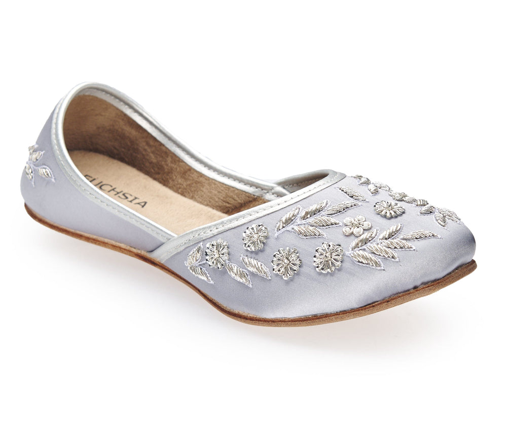 Crafted with care in small batches, these style is a limited edition. The rich silver hue is adorned with intricate gold embroidery, making each pair a work of art. Step into the festivities with Fuchsia's exclusive holiday color.