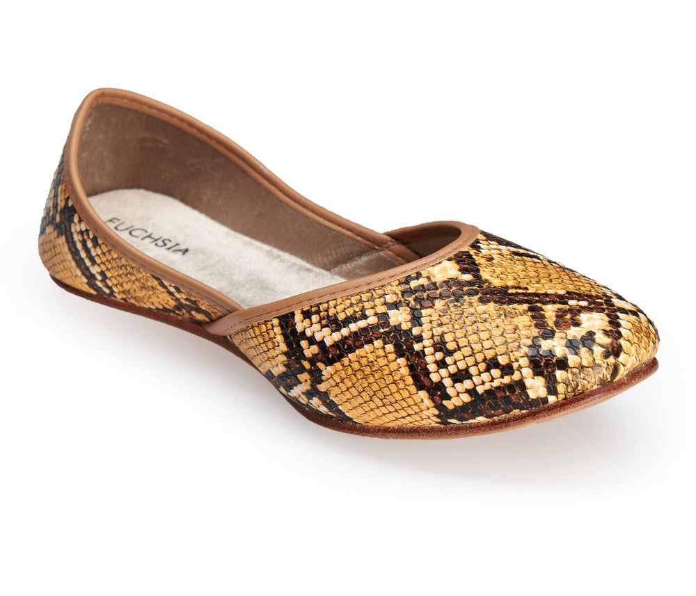 Handmade Women's Flats in stunning python-textured fabric. Elevate your style with these comfortable and luxurious flats. Perfect for any occasion, they're the ultimate blend of fashion and comfort.