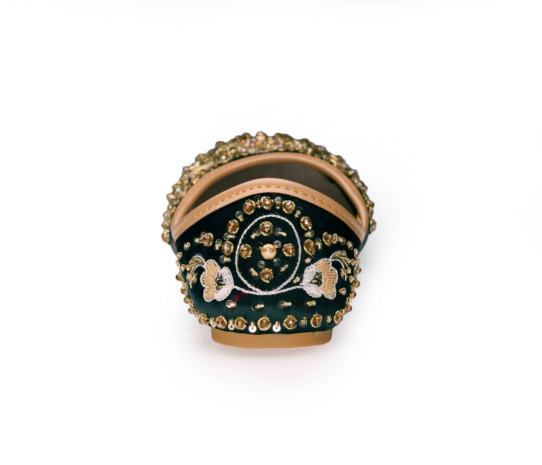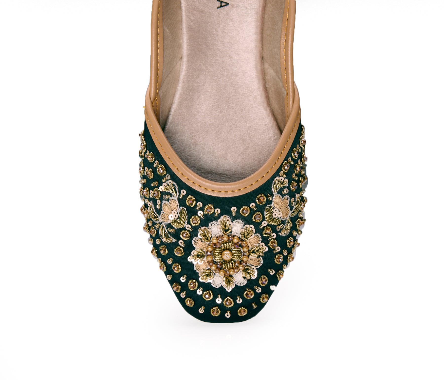 Crafted from sleek black satin and adorned with exquisite handmade beaded embroidery, these flats are a true statement piece. Perfect for any occasion, they offer timeless style and all-day comfort with their cushioned insole.