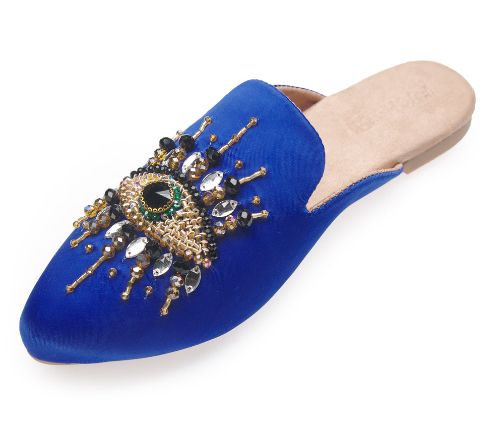 Introducing "The Eye" - a stylish flat mule made from vegan materials. Featuring a pointed toe with hand-stitched crystals and embroidery, these mules are perfect for adding some sparkle to your outfit. Plus, the soft footbed ensures all-day comfort. Upgrade your shoe game with "The Eye" today!