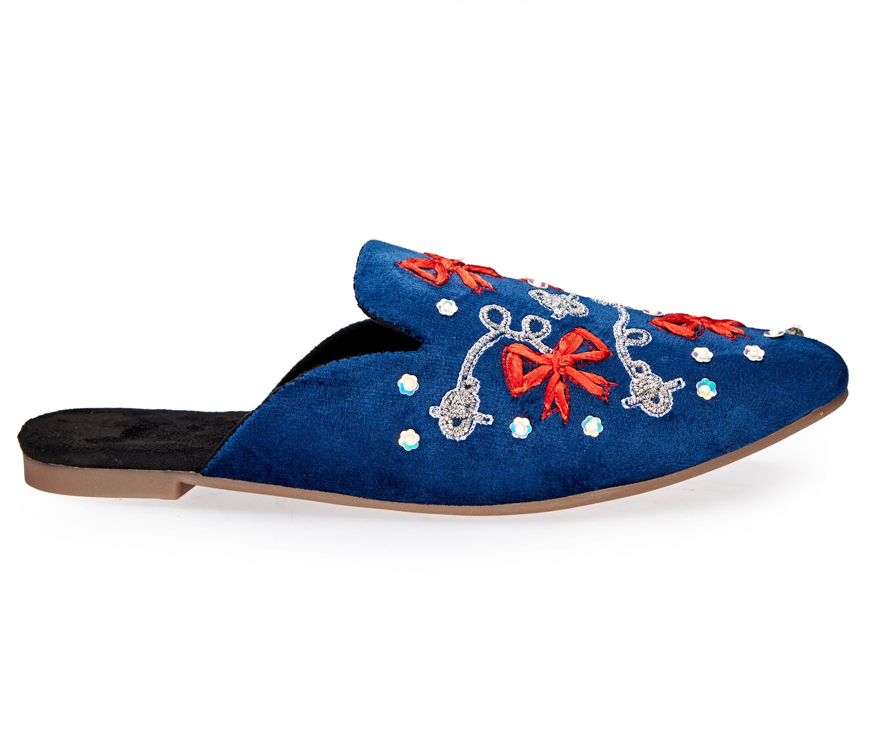 Adorned with exquisite handmade holiday embroidery on rich navy velvet, these mules are designed to make every festive moment unforgettable. Slip into effortless elegance that combines artisan craftsmanship with all-day comfort—because holiday style shouldn't mean sacrificing how you feel.